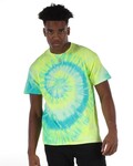 Dyenomite Adult 5.3 Ounce Tie Dye Ripple Spiral T-Shirt. Preshrunk, 100% cotton. Double-needle stitched neckline and bottom hem. Dyed with pigment dye.